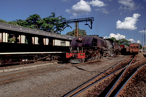 Luxury Tourist train from Johannesburg arriving at Victoria Falls station