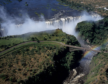 Victoria Falls with bridge connecting Zimbabwe and Zambia